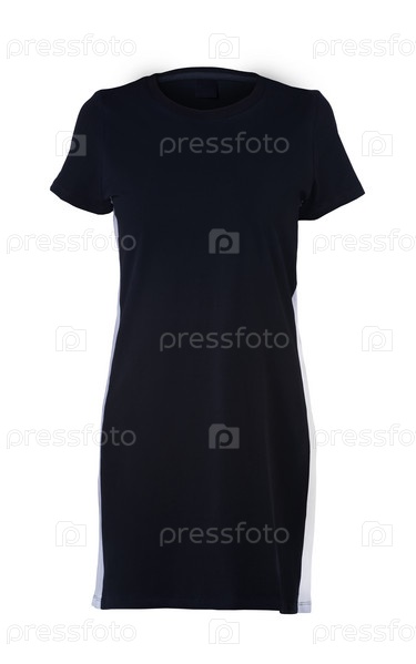 Черное прямое женское платье с короткими рукавами, изолированное на белом