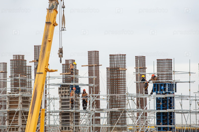 Рабочие со специальным оборудованием на строительной площадке делают опалубку