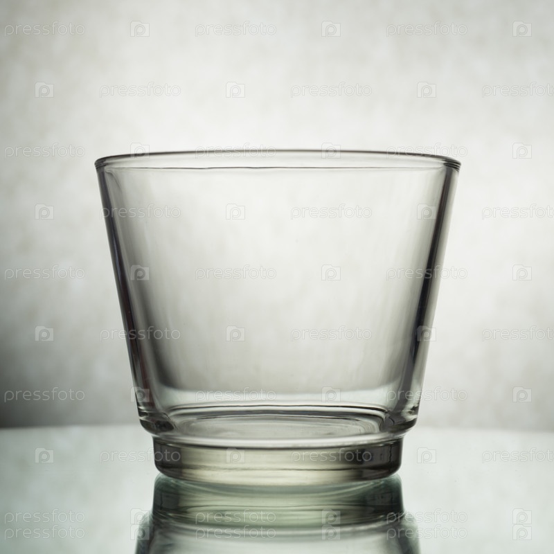 Вертикальный снимок пустого стакана на сером фоне