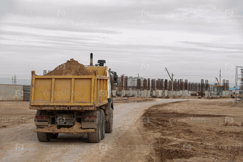 Оранжевый самосвал на строительной площадке