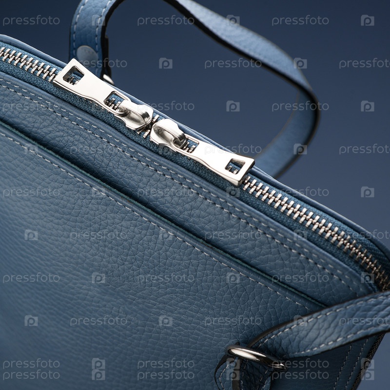 Крупный план роскошной синей кожаной сумки