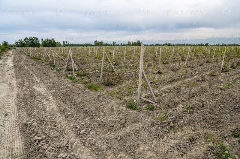 Вид на виноградники в сельской местности. Центральная Азия