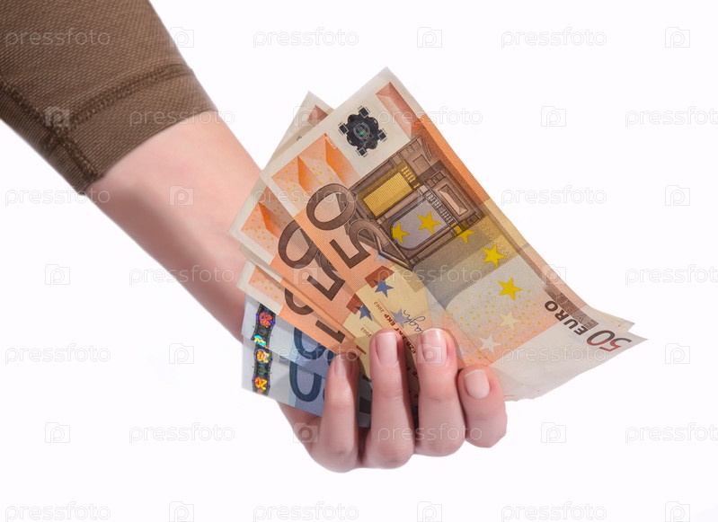 Банкнота евро в женской руке