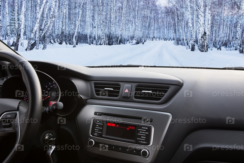 Зимний пейзаж в салоне автомобиля