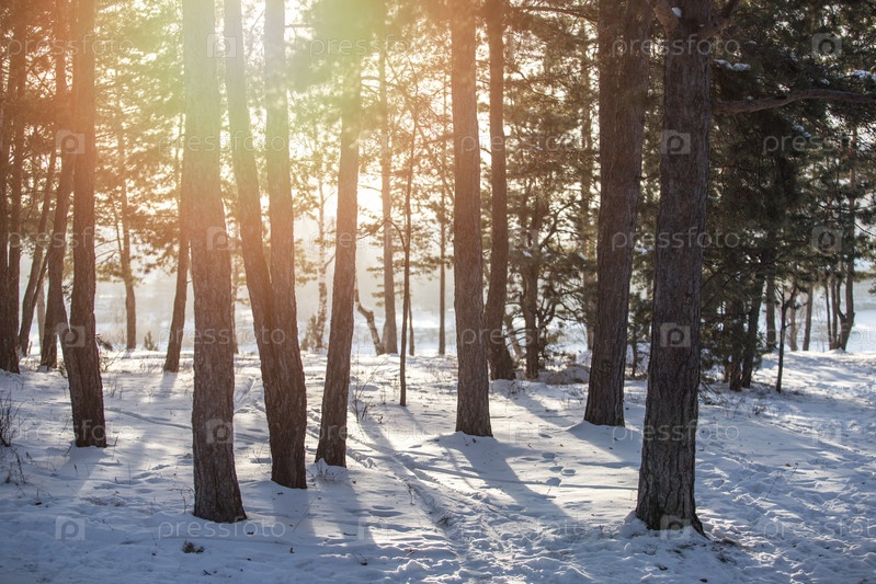 Зимний лес в лучах солнца