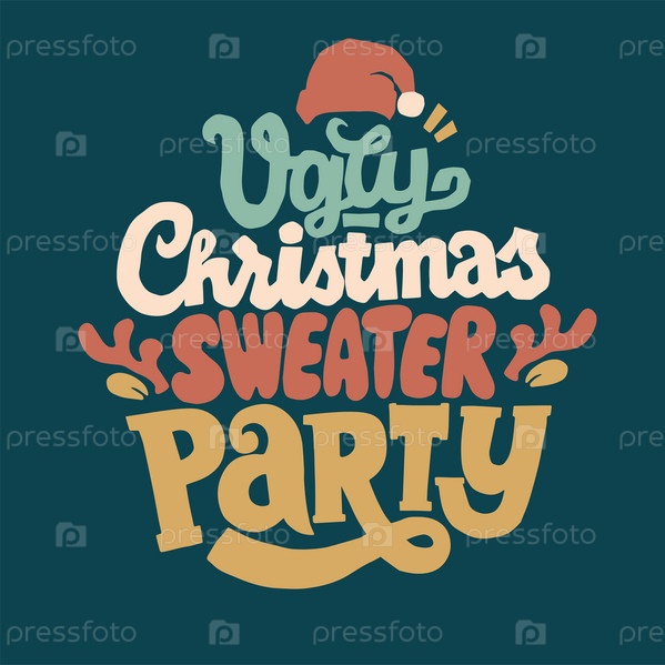 Уродливая вечеринка в свитере - векторный текст рождественских развлечений. Дизайн плаката, поздравительной открытки, приглашения на вечеринку. Векторная иллюстрация