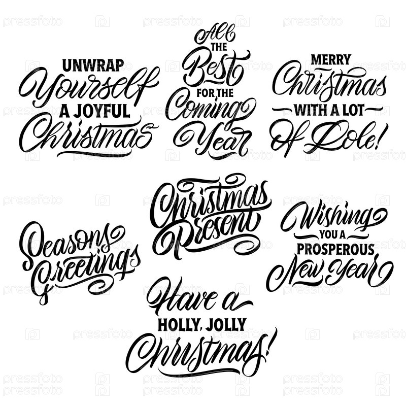 Новогодние и рождественские фразы. Векторный набор надписей на Рождество. Дизайн плаката, поздравительной открытки, приглашения на вечеринку. Векторная иллюстрация