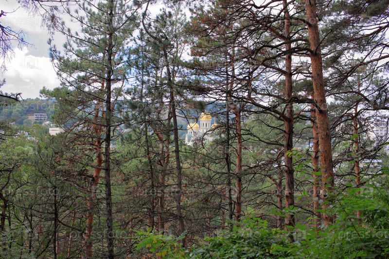 Вид на окраину Кисловодска с Сосновой горы в Кисловодском парке