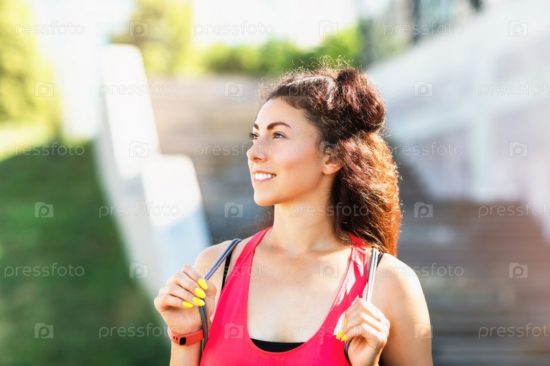 Портрет молодой красивой девушки, гуляющей по городу в солнечный теплый день