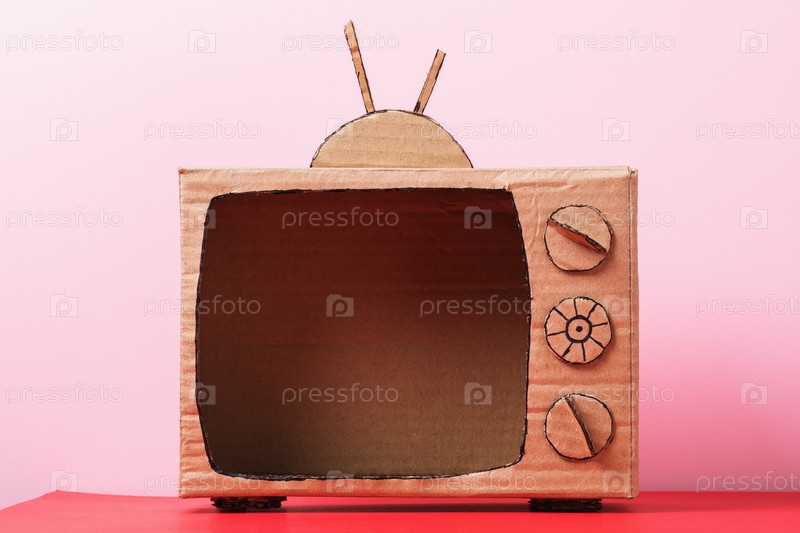 Пустой картонный телевизор на розовом фоне. Концепция на тему телевидения