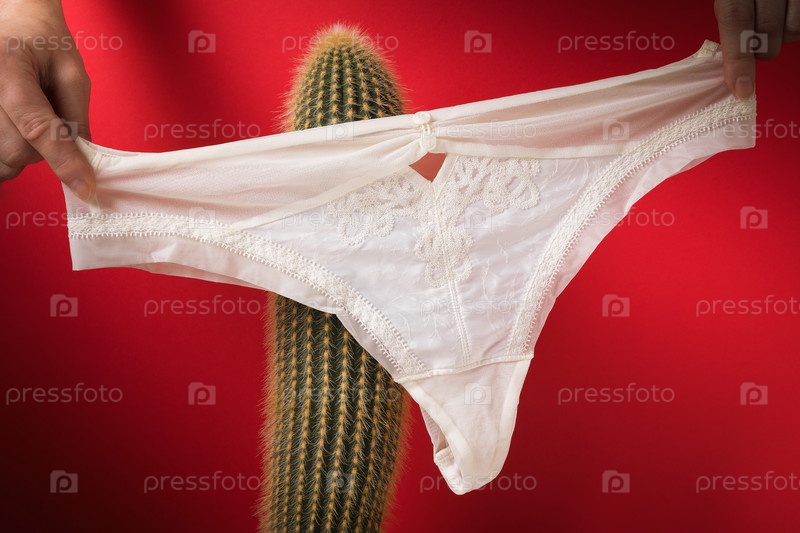 Светлые трусы и кактус на красном фоне. Концепция молочницы у женщин