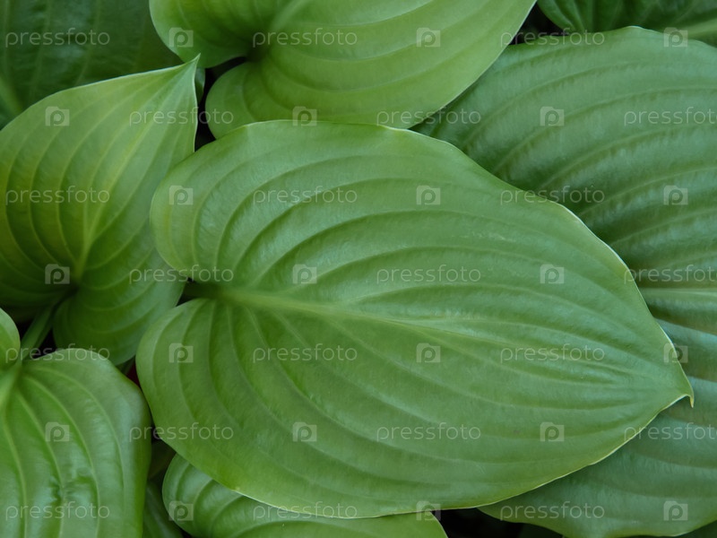 Свежая трава крупным планом, зеленые листья. Зеленый летний фон. сочные гладкие зеленые листья хосты с прожилками текстуры, составляющие фон свежей тропической зелени