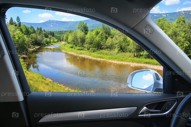 Пейзаж с рекой из окна машины