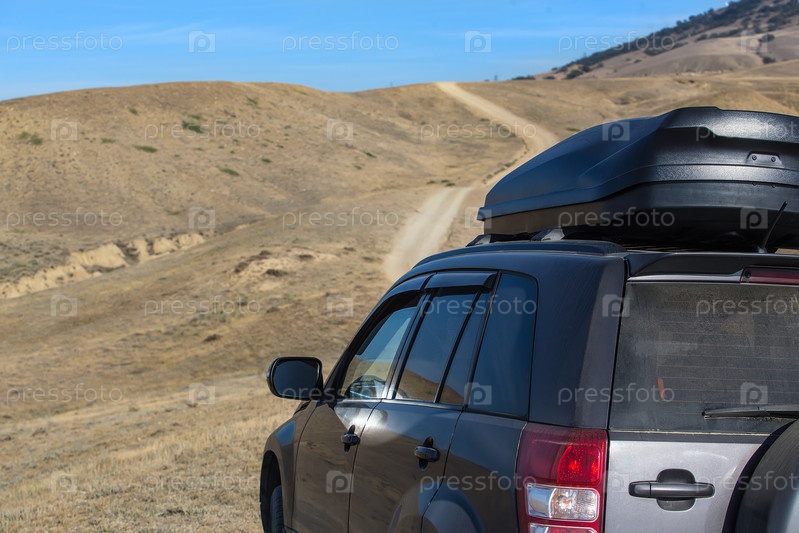 Внедорожник на поле под пасмурным небом