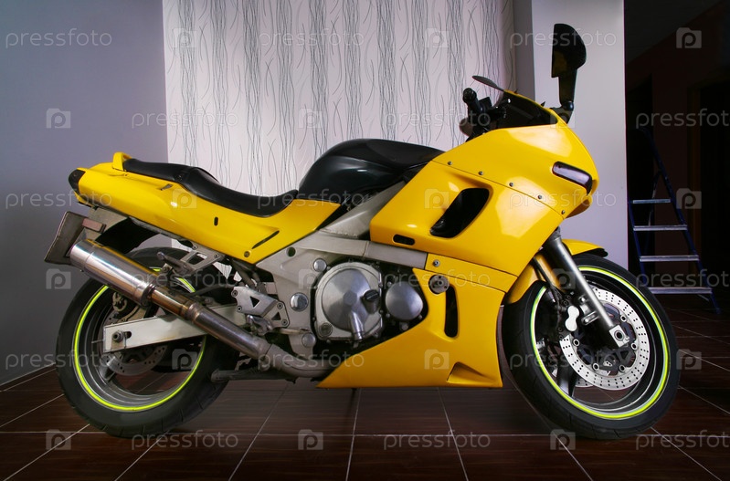 Желтый мотоцикл в гараже