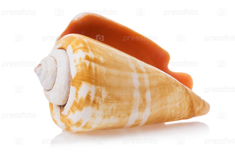 Конусообразная ракушка на белом фоне