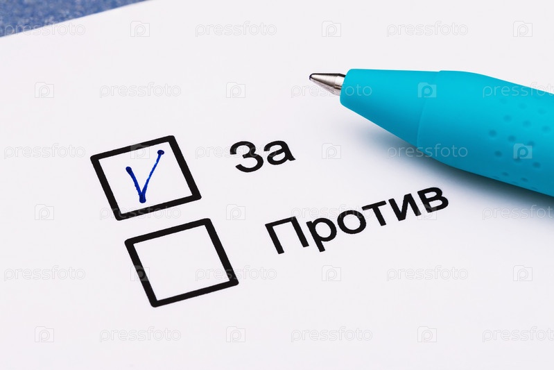 Надпись на русском языке: за и против. Концепция положительного голосования