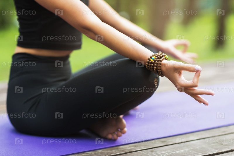 Девушка со скрещенными ногами улучшает самосознание, повышает ясность ума. Практикуйте медитацию без стресса, знак гьян мудра