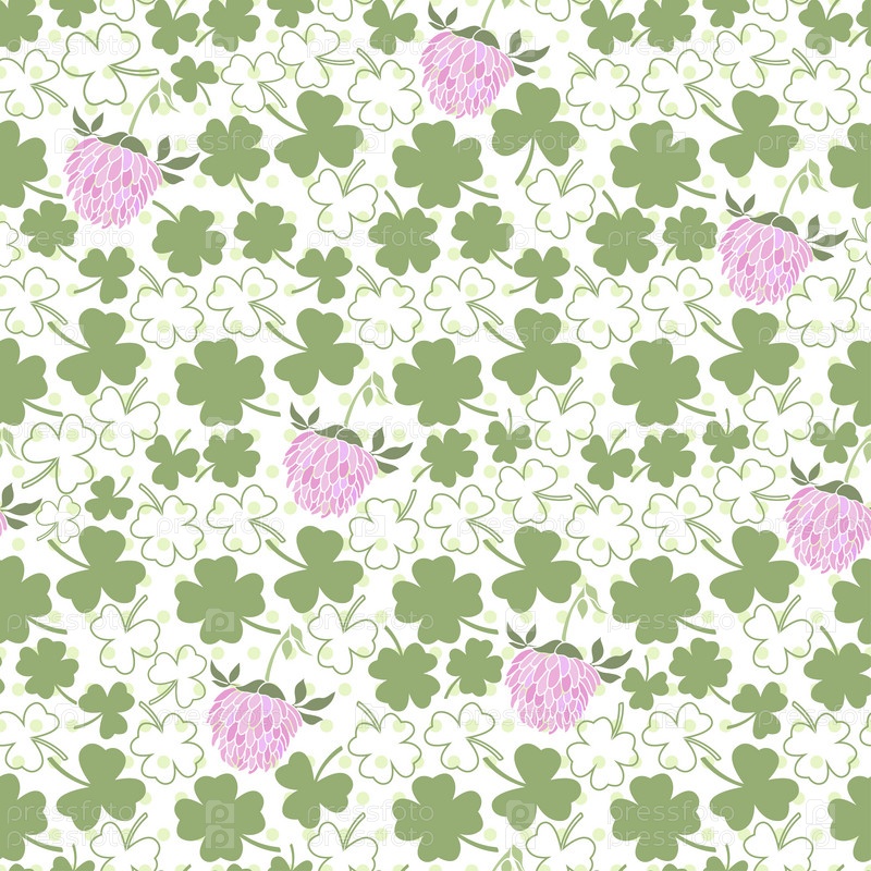 Бесшовный узор с клевером на фоне горошек