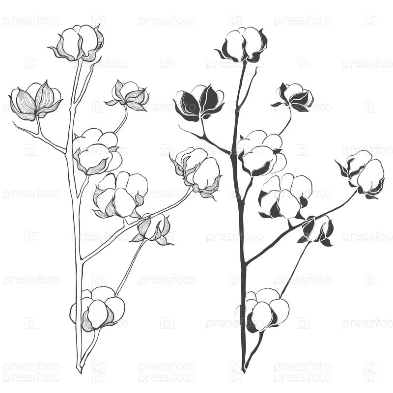 Набор хлопка, изолированные на белом фоне. Ручная рисованная векторная иллюстрация, эскиз. Элементы для дизайна
