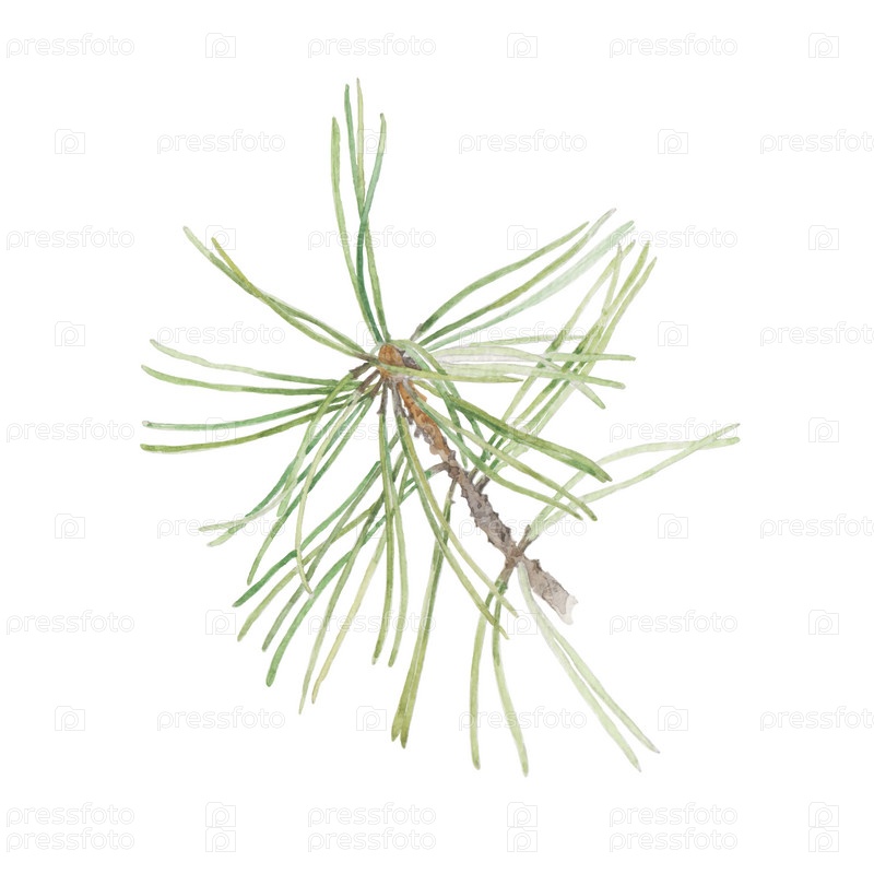 Акварельная иллюстрация с сосновой ветвью на белом фоне. Векторная иллюстрация