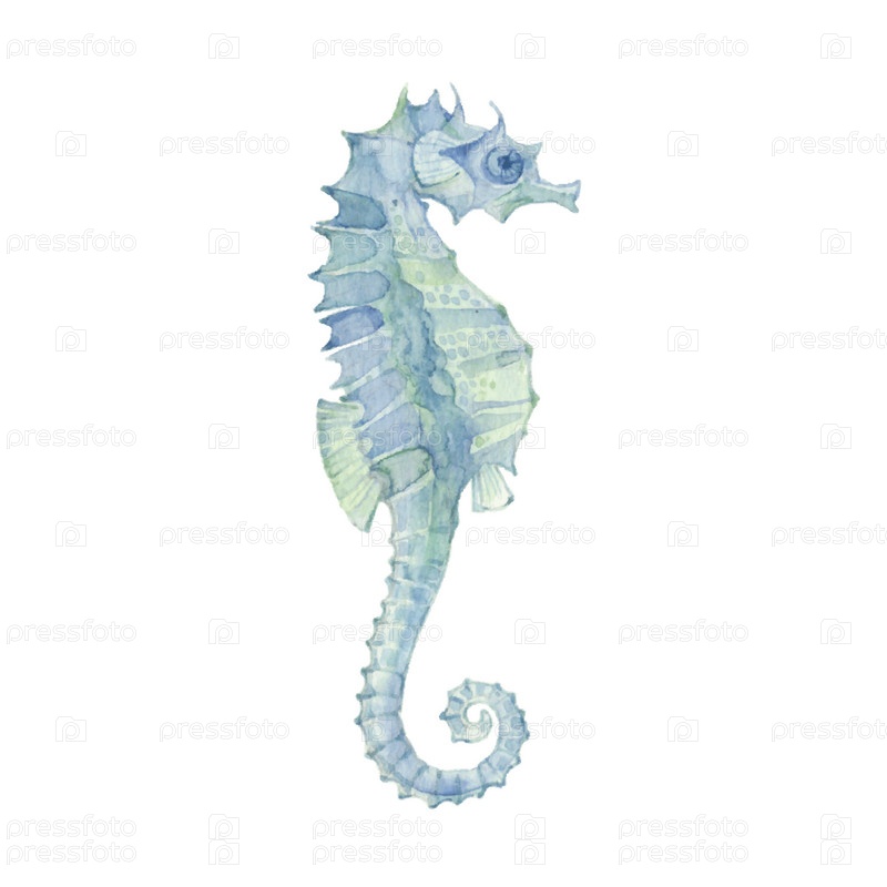 Морской конек, изолированные на белом фоне. Вектор, акварель рисованной иллюстрации