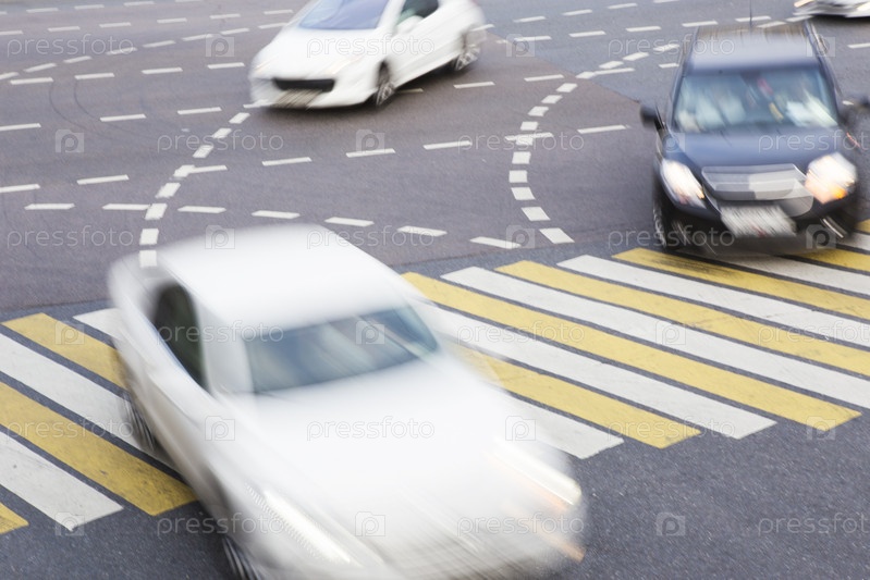 Движение автомобиля на перекрестке в городе