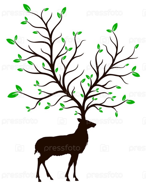 Силуэт дикого оленя с большим деревом