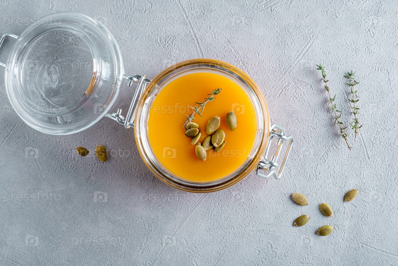 Суп-пюре из тыквы с тыквенными семечками и тимьяном