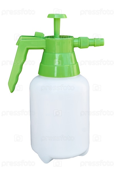Небольшой ручной распылитель пестицидов или гербицидов для работы в огороде, изолированный на белом фоне