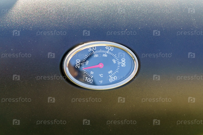 Крупный план термометра на гриле показывает температуру