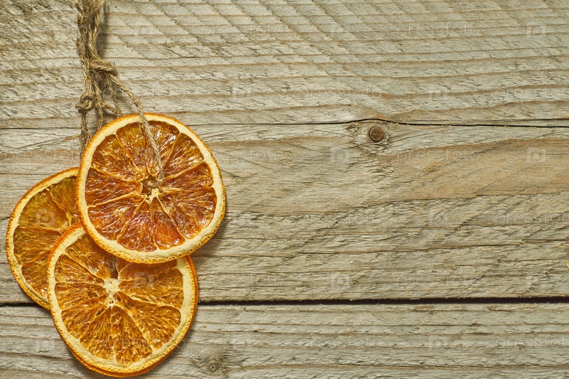 Рождественский декор. сушеные апельсиновые дольки для украшения новогодней елки на деревянном фоне, скопируйте место для текста