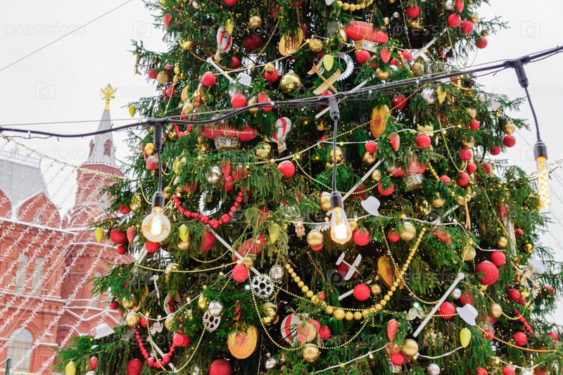 Манежная площадь украшена елками. Москва, Россия