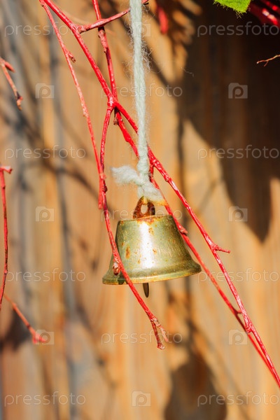 Старый ржавый матовый колокол висит на дереве