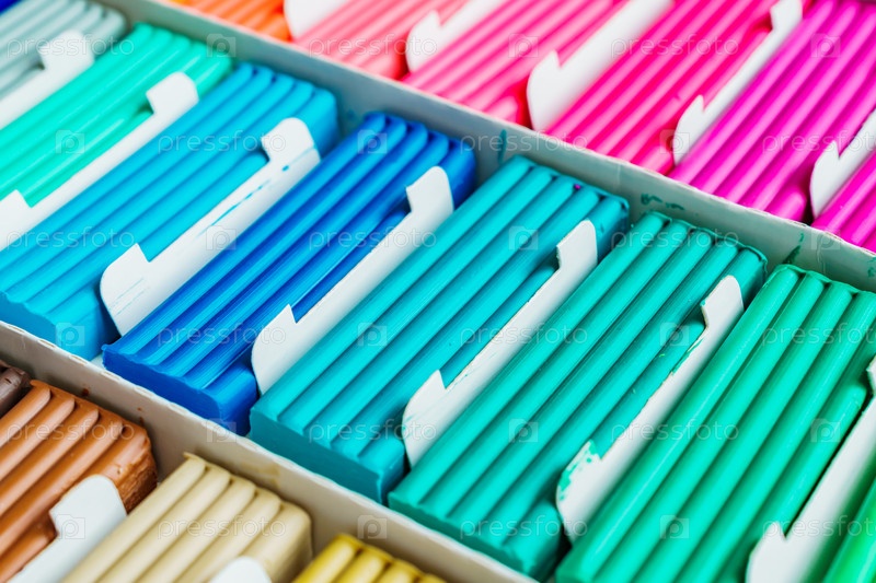 Цвета радуги из пластилина. Разноцветные пластилиновые батончики в коробке, фоновая текстура