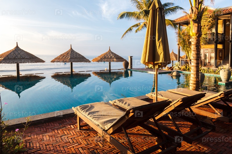 Бассейн и зонтики на море