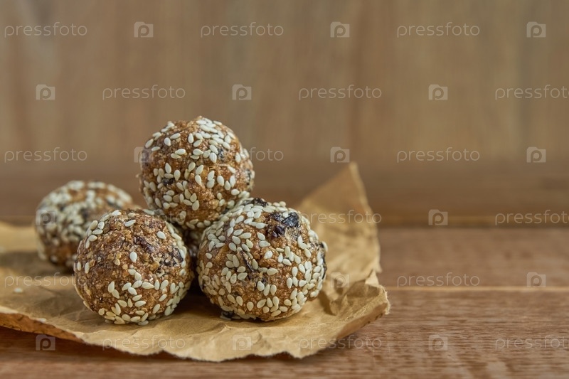 Здоровые органические энергетические мюсли с орехами, какао, кунжутом и медом - веганские и вегетарианские сырые закуски