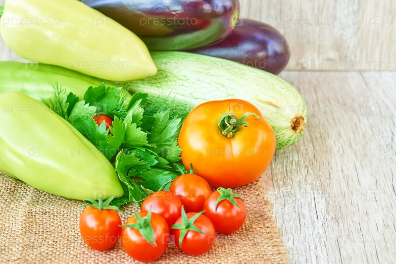 Органические овощи на дереве. Фон здоровой пищи, с копией пространства