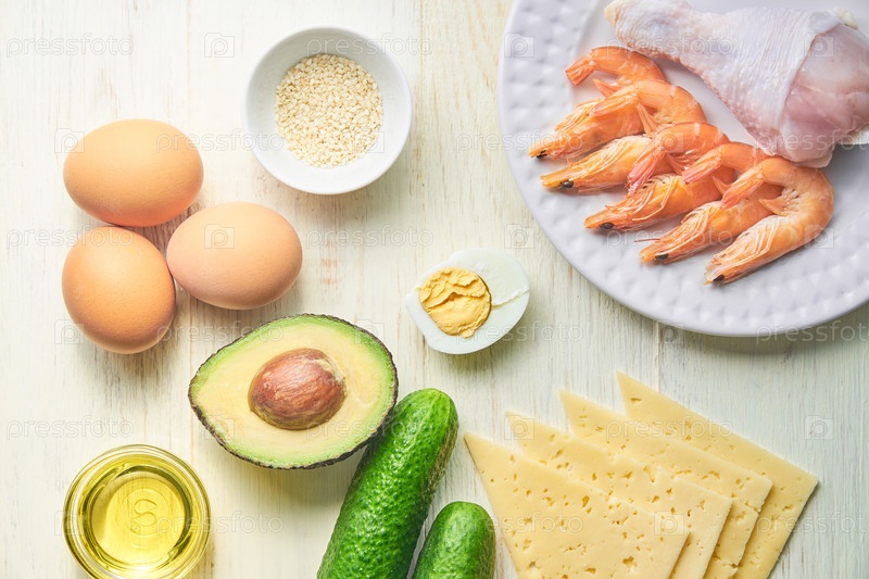 Ингредиенты для кетогенной диеты на деревянном фоне. Концепция здорового питания. Вид сверху