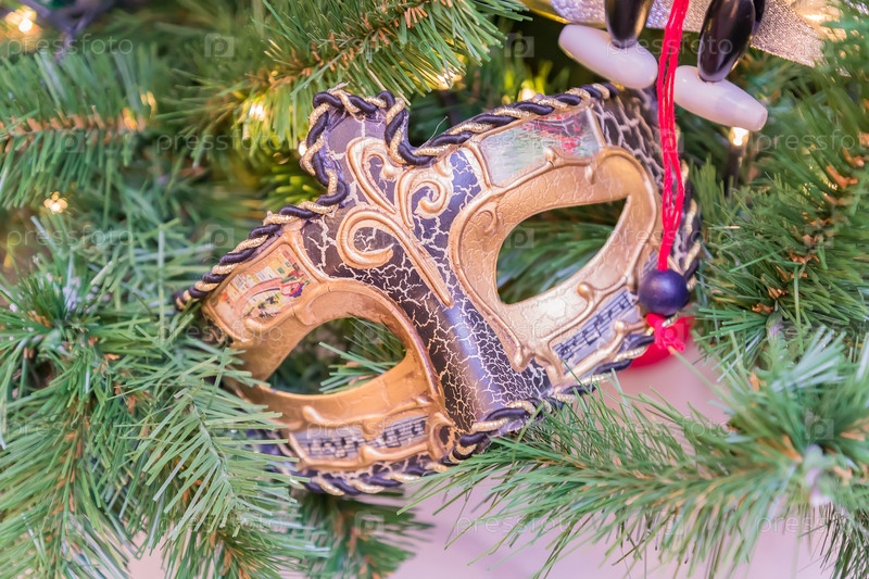 Новогодний декоративный фон с карнавальной маской