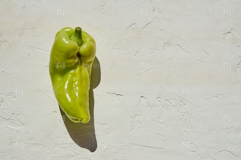Модный уродливый органический зеленый перец с пятнами на белом фоне. Жесткий свет