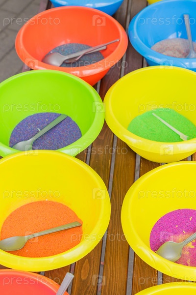 Цветной песок в пластиковых мисках. Мастер-класс по созданию картинок из песка для детей