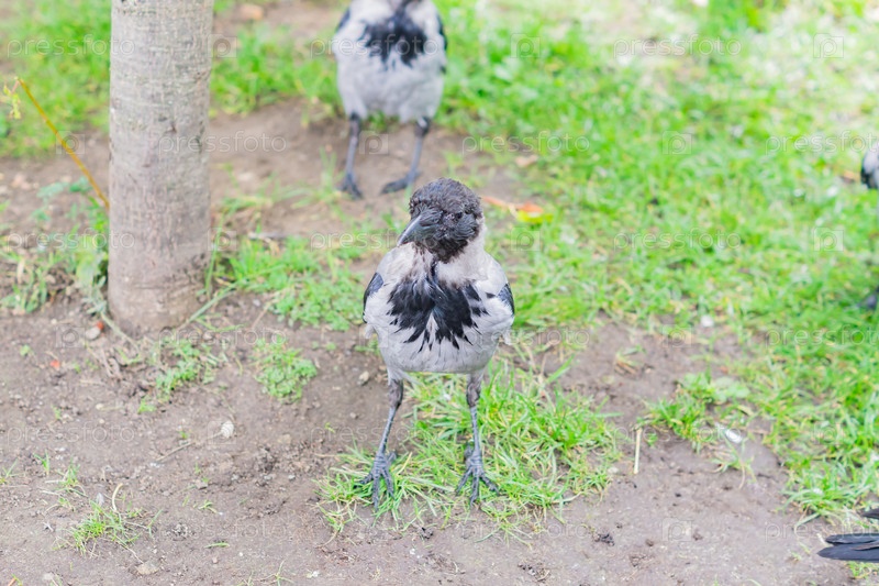 Стая черных и серых ворон в парке