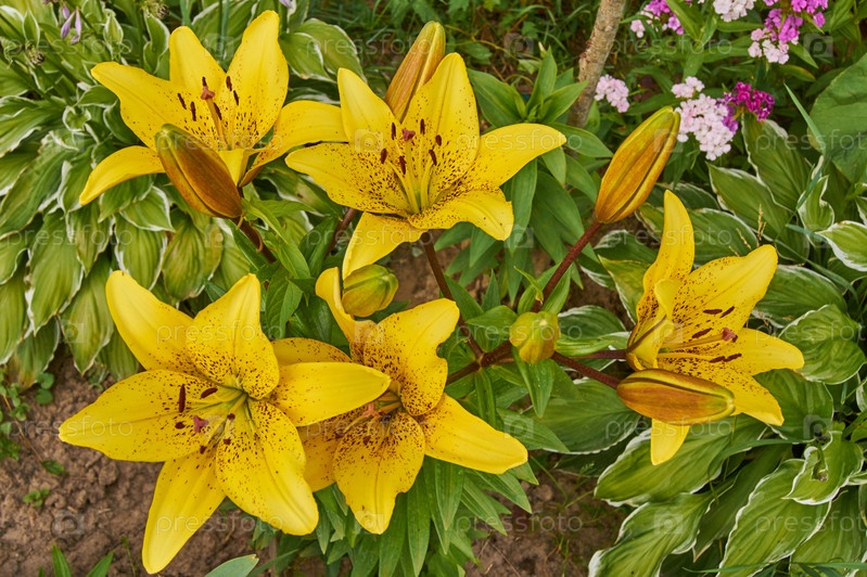 Крупный план цветущих желтых лилий в саду