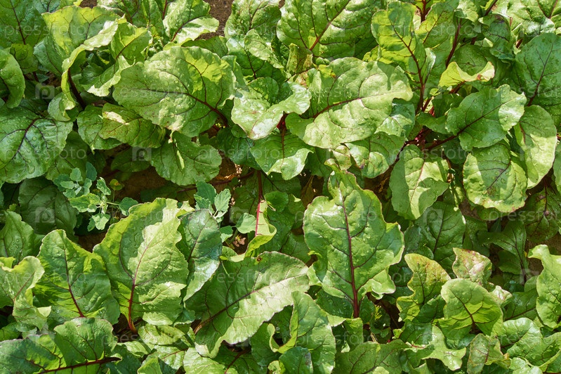 Беттрут растет в огороде. Концепция сельского хозяйства и здорового питания, вид сверху