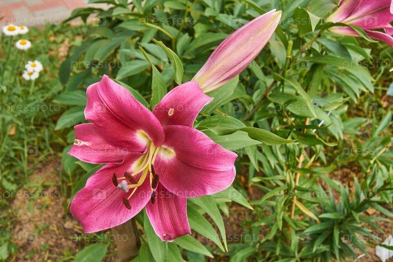 Крупный план цветущих розовых лилий в саду