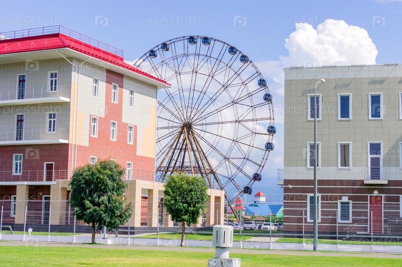 Сочи, Россия - 07 сентября 2019 г. Большое колесо обозрения в парке развлечений Сочи