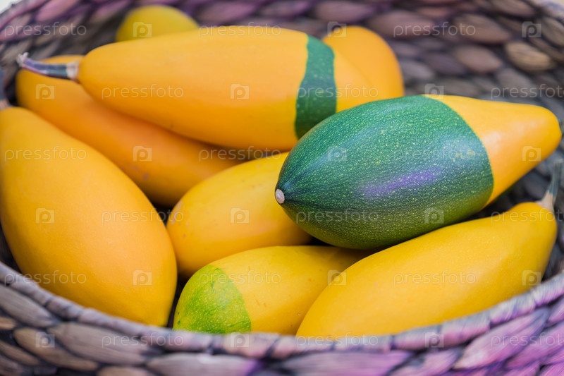 Маленькие декоративные тыквы (Kleine Birne Bicolor) в плетеной корзине