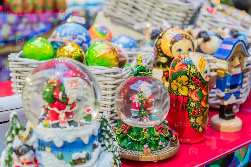 Рождественские игрушки на ярмарке. Праздничные покупки