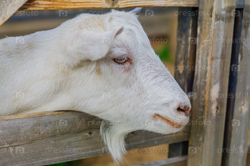 Портрет молодой прекрасной белой козы на ферме